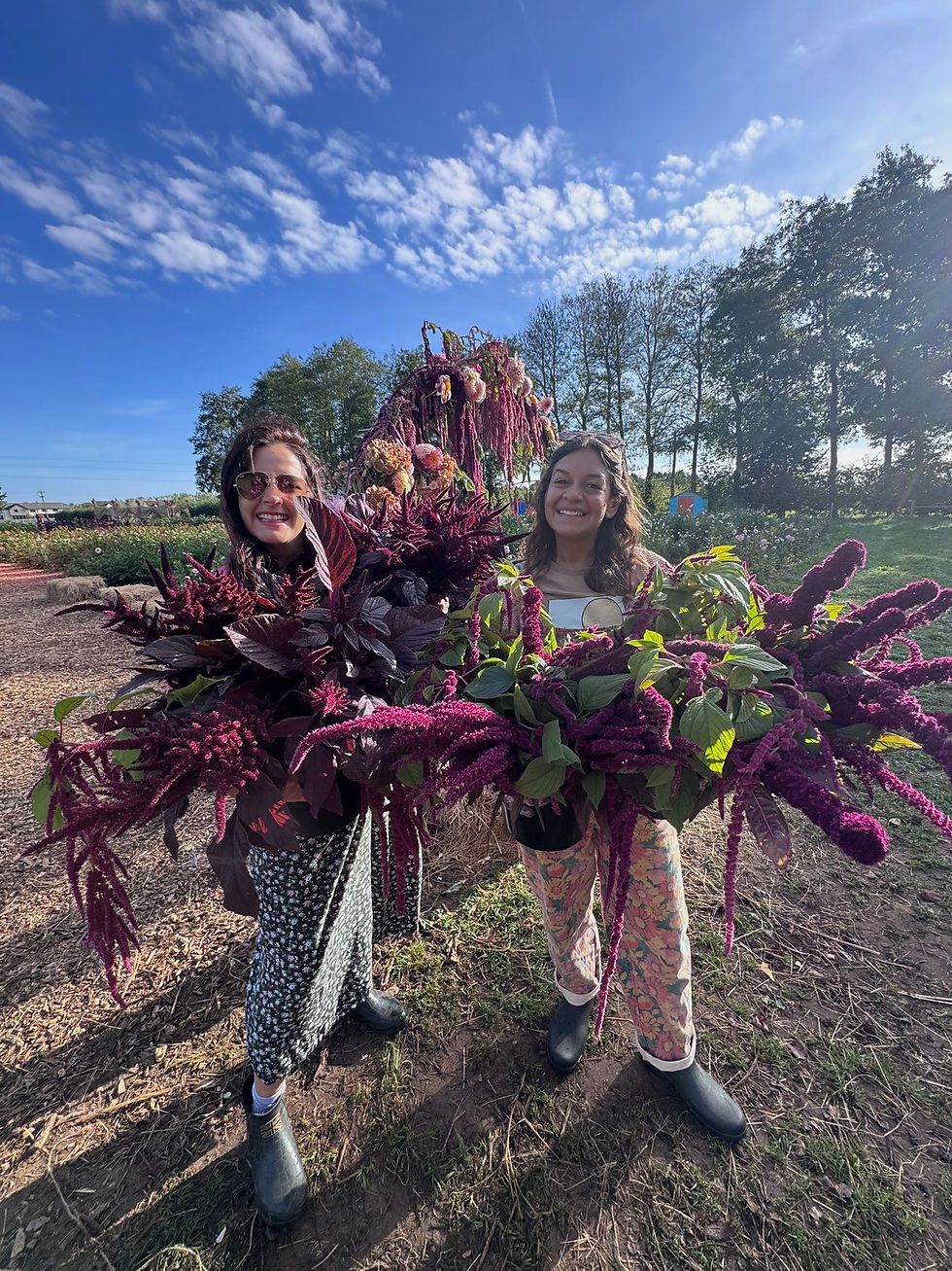 We love growing amaranthus alongside our dahlias and annual flowers on the Dahlia Beach farm. The deep colours and unusual shapes bring contrast and movement to the fields - and they make a wonderful addition to our cut flower harvest throughout the summer.